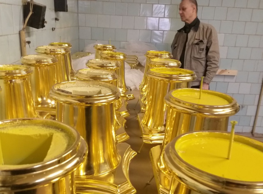 Специалисты уточнили, что на последнем этапе золоченные детали будут смонтированы на подготовленный каркас, после чего в него будут вставлены иконы.