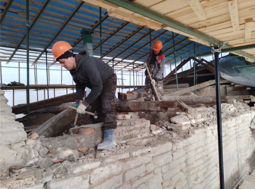 В Стефаниевской церкви продолжаются работа. Там готовят стропила братского корпуса, делают вычинку кирпича колокольни, барабана, фасадов, подготавливают к пескоструйной обработке поверхности. Идет кладка камня главки церкви и замена кладки кирпича колокольни.