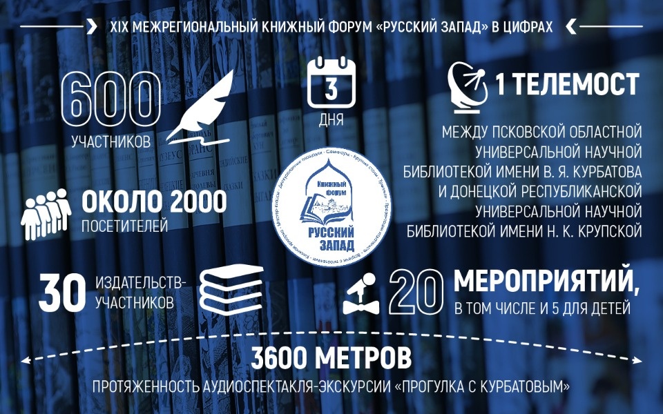 На минувшей неделе в Пскове на площадке областной универсальной библиотеки имени В. Я. Курбатова три дня работал XIX Межрегиональный книжный форум «Русский Запад». «Псковская правда» подготовила инфографику по его итогам.