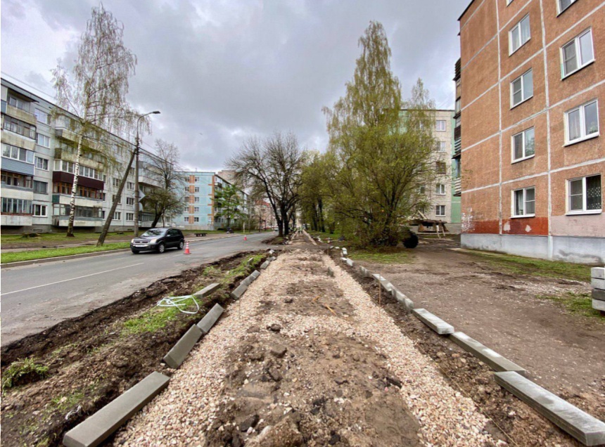 Работы проводятся на участке от улицы Киселева до Народной по нечетной стороне. Специалисты удалили старое покрытие и бортовой камень. Сейчас устанавливается новый бордюр и обустраивается основания тротуара.