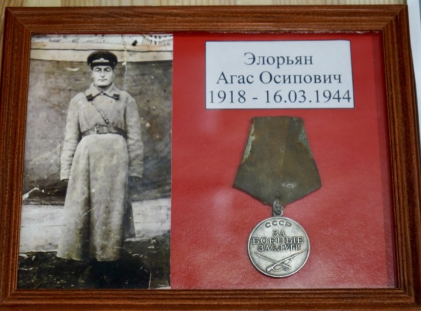 «Гвардии ефрейтор Агас Элорьян служил кузнецом ковочного взвода снабжения 66-го гвардейского стрелкового полка. В ноябре 1943 года боец был удостоен медали «За боевые заслуги», благодаря которой и удалось установить его личность», – отметили в пресс-службе. Подчёркивается, что в приказе о награждении записано, что герой «награжден за то, что исключительно добросовестно относился к работе по ковке лошадей, лично сам организовал изготовление ковочных гвоздей и подков, тем самым организовал своевременную перековку лошадей батальона. Во время боев доставлял боеприпасы на переднюю линию».