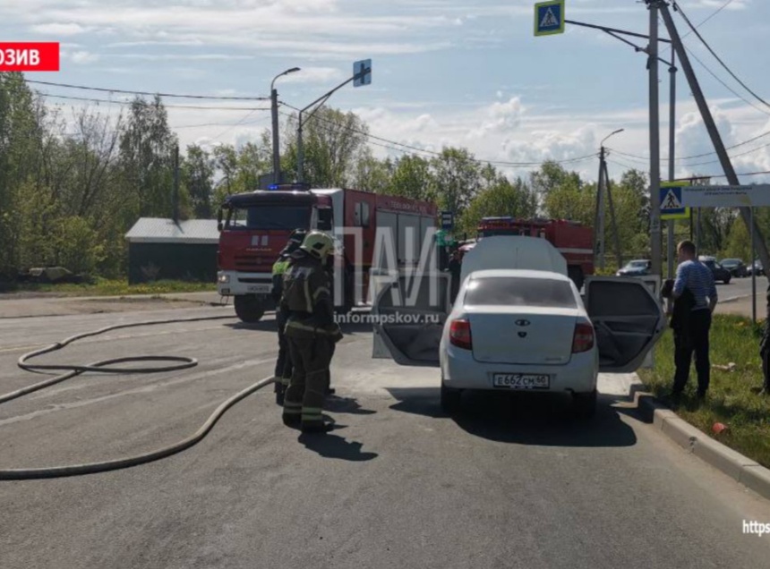 Сотрудники ДПС и очевидцы в Пскове помогли потушить горящий автомобиль, об этом сообщает Телеграм-канал «Псковская сводка ПАИ».