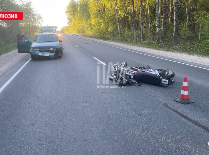 Автомобиль ВАЗ-2111 и мотоцикл столкнулись на выезде из села Середка в Псковском районе. Как отметил водитель легковушки, мотоциклист резко начал совершать разворот с обочины, из-за чего он не успел своевременно среагировать.