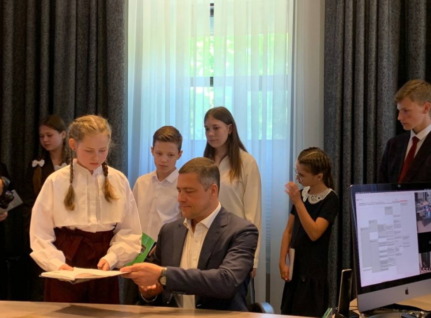 Михаил Ведерников показал школьникам свое рабочее место, график работы и рассказал, как нужно подписывать документы. Затем каждый победитель смог посидеть в кресле главы Псковской области.