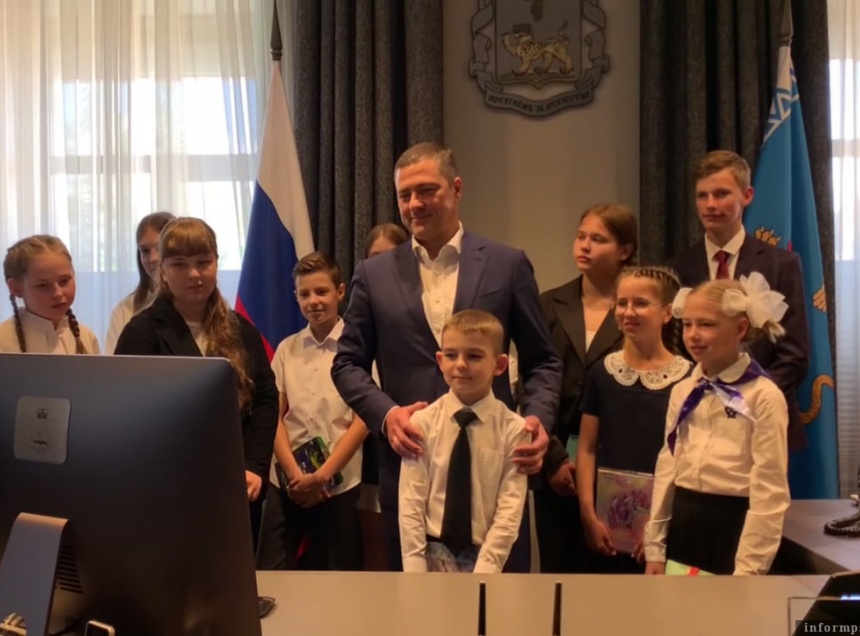 Ранее глава региона провёл отличникам экскурсию по своему кабинету, ответил на их вопросы и расписался в дневниках.