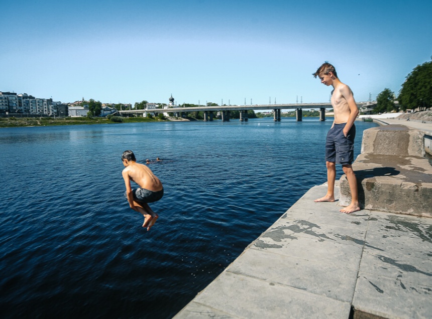 Он отметил, что на данный момент в районе железобетонного пирса глубина составляет 1 метр 90 см, высота же его – порядка трех метров над уровнем воды. Её для прыжков в реку Великую даже с ровным дном недостаточно.