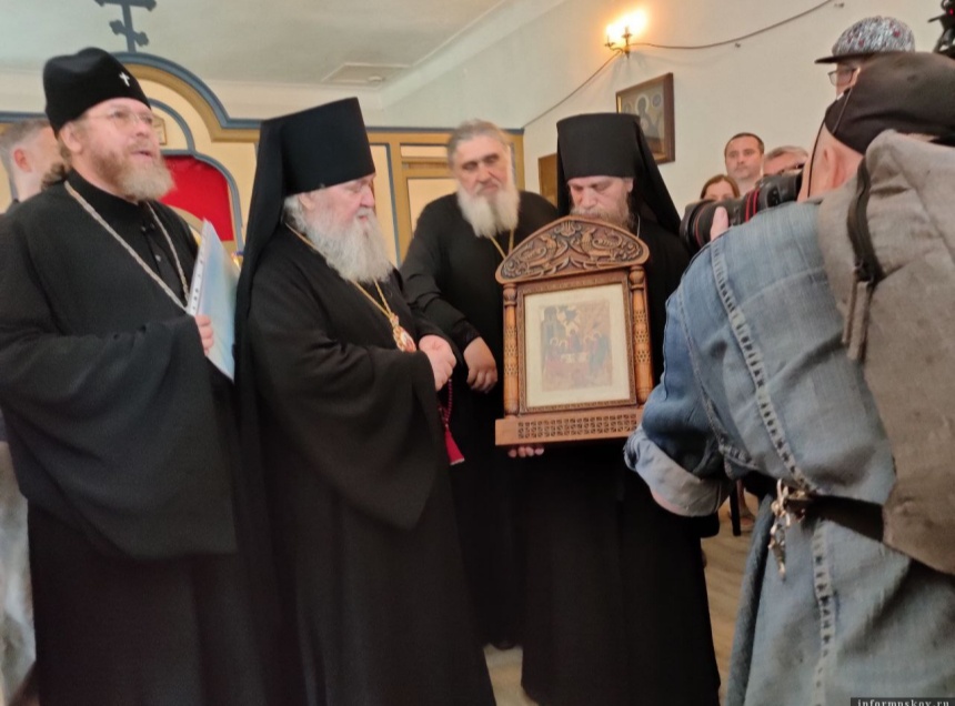 Ковчежную икону XVI века «Троица» представителям Псковской епархии в рамках Дней Пушкинской поэзии и русской культуры в Пушкинских Горах передал депутат Государственной Думы России Бекхан Барахоев.
