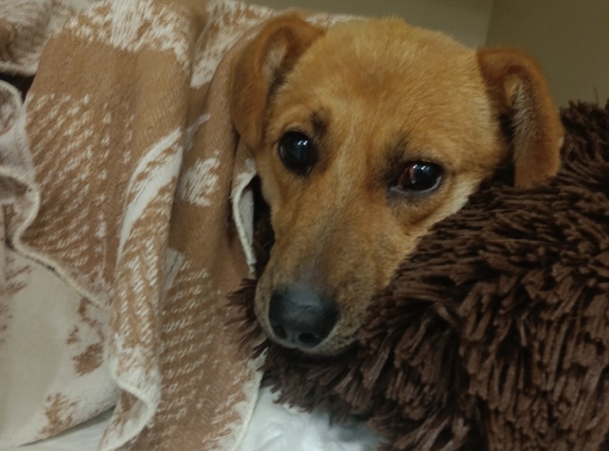 На данный момент щенок находится в стабильном состоянии, его температура в норме. Катыш пьет и ест, ходит в туалет. Капельницы псу больше не нужны.