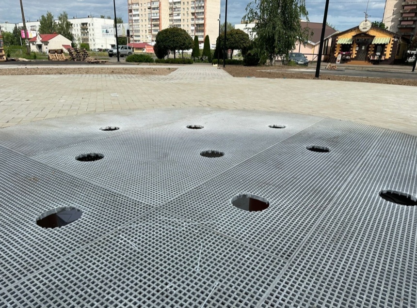 На объектах установили столбы для освещения с видеонаблюдением, заасфальтировали площадки для малых архитектурных форм, уложили тротуарную плитку и смонтировали фонтан в сквере на улице Вокзальной.