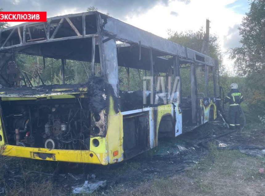 Возгорание неэксплуатируемого автобуса зафиксировали на территории гаражного кооператива на Рижском проспекте, со стороны Ленты, в Пскове.