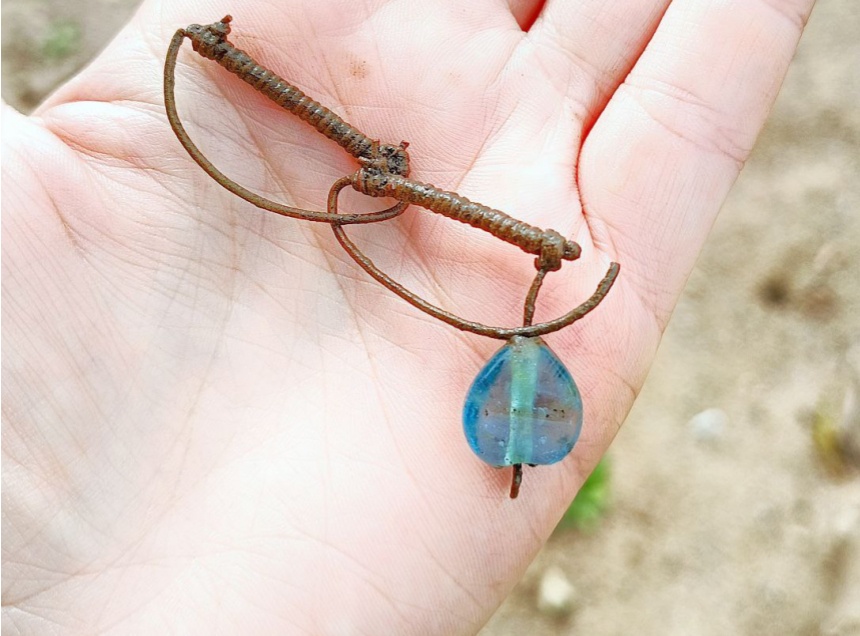 Подобные сережки уже находили весной в некрополе у церкви Сорока Мучеников Севастийских в Печорах. Там такие украшения были частой находкой.