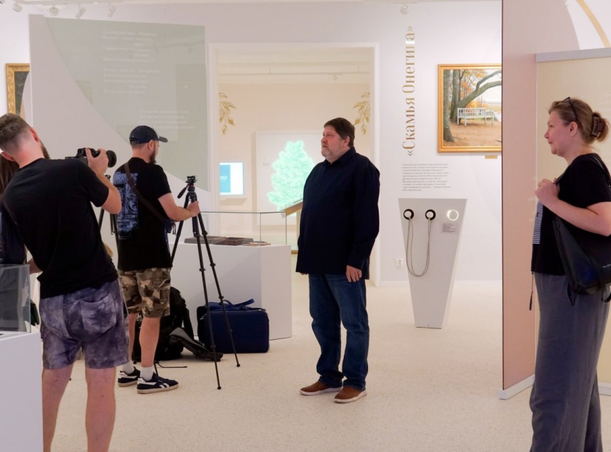 Съемочную группу в этот раз проконсультировали музейные сотрудники. «Побывали наши гости и на новой интерактивной выставке «Эмоции природы, природа эмоций. Пушкинский литературный ландшафт»», – подчеркнули в заповеднике.