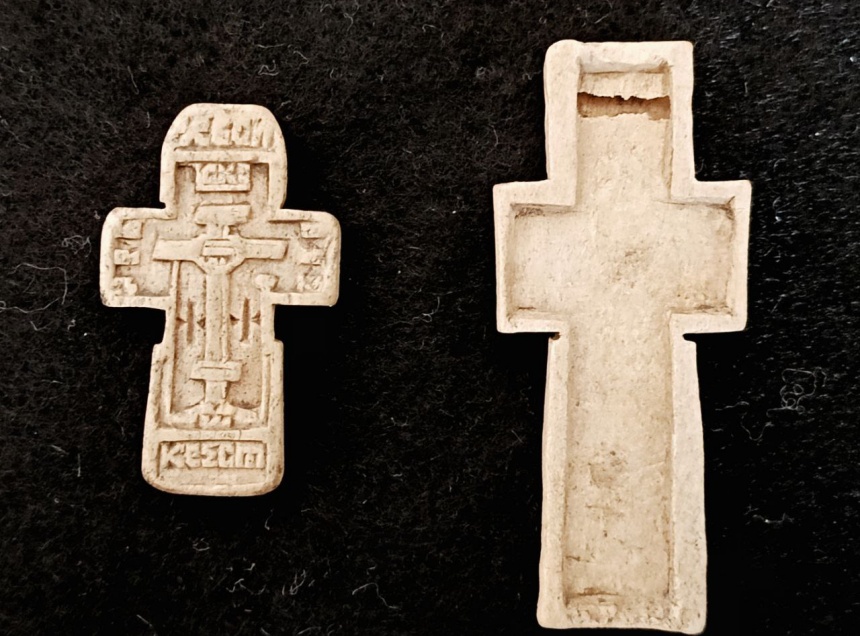 По словам специалистов, нательные крестики довольно часто можно обнаружить в культурном слое Пскова. Реже всего встречаются костяные кресты. За многие годы археологического изучения города их удалось найти всего порядка десяти штук.