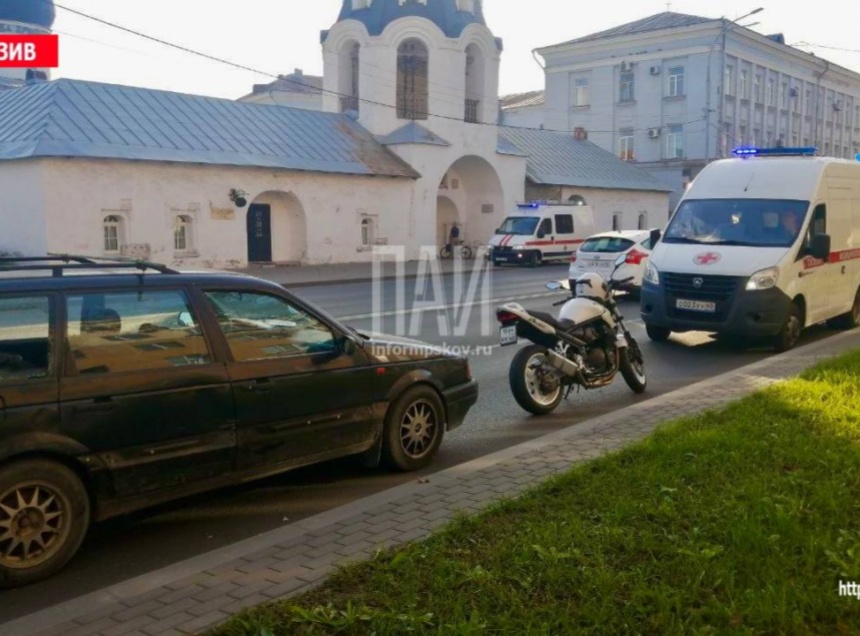 В центре Пскова произошло ДТП с участием мотоциклиста. Об этом сообщает Телеграм-канал «Псковская сводка ПАИ».