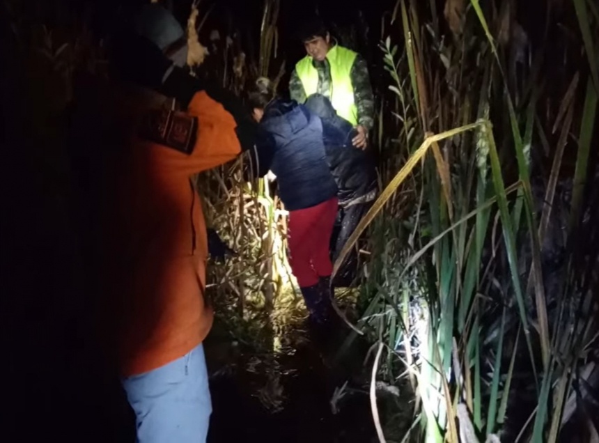 Вытащить бабушку, находившуюся уже по пояс в болоте, удалось благодаря найденным листам шифера. Сам процесс эвакуации был долгий и осторожный.