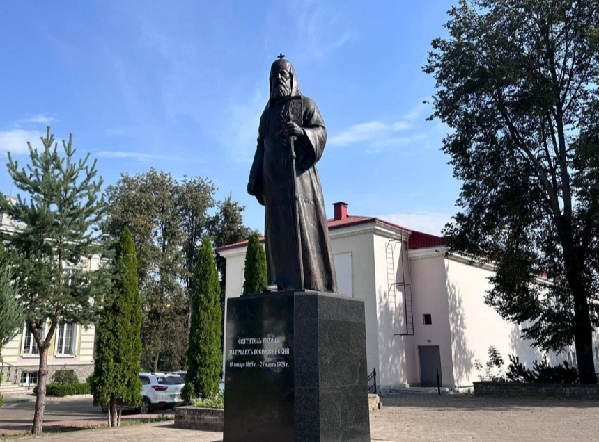 Монумент в честь 100-летия со дня блаженной кончины святителя, патриарха Московского и всея Руси Тихона установили недалеко от Свято-Вознесенского кафедрального собора – на Вознесенской площади.