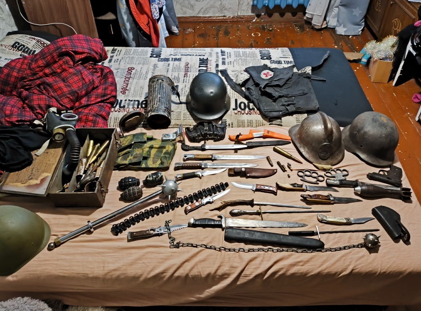 В ходе оперативно-разыскных мероприятий пограничники обнаружили в доме у псковича взрывное устройство (50 мм мина), три единицы огнестрельного оружия, которые были самостоятельно изготовлены, три единицы частей к огнестрельному оружию и 89 боеприпасов различного калибра.