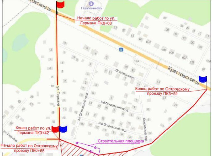 В связи с капремонтом улицы Германа с 24 сентября по 31 октября для транспорта перекроют участок от пересечения с улицей Декабристов до Крестовского шоссе.