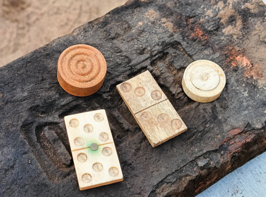 На развалах были найдены фишки для домино, игральные бабки, костяные шашки, керамическую фишку домино и стеклянные шарики для игры в марблс. В заполнении дома археологи обнаружили фарфоровые статуэтки, например, миниатюрную птицу.