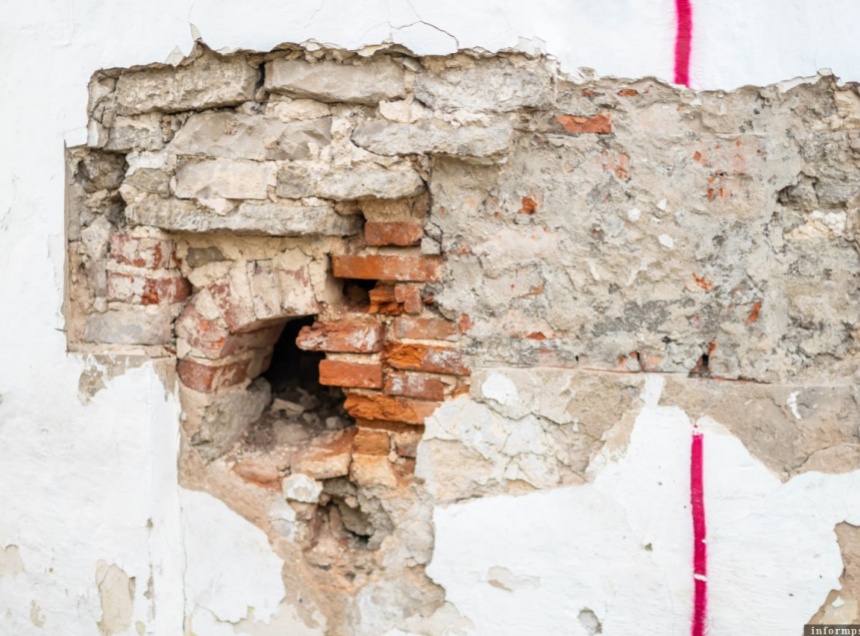 Она поделилась, что у южного предела храма имеется алтарная апсида. «И всегда мы, как специалисты, предполагаем, что окно у алтаря должно быть по центру. Естественно, пытаясь раскрыть это окно, мы стали делать зондирование по оси, но его там не нашли. И каким-то образом, где была неровная штукатурка, и немного южнее центра раскрылось чудесное окно с поздними перекладками», – рассказала Мария Лисенкова.