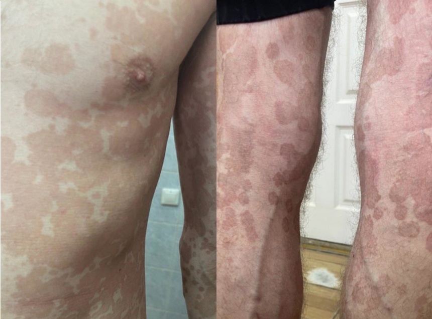 Пятна не вызывали зуда, жжения или иного дискомфорта. Однако при осмотре врач установил, что это отрубевидный лишай.