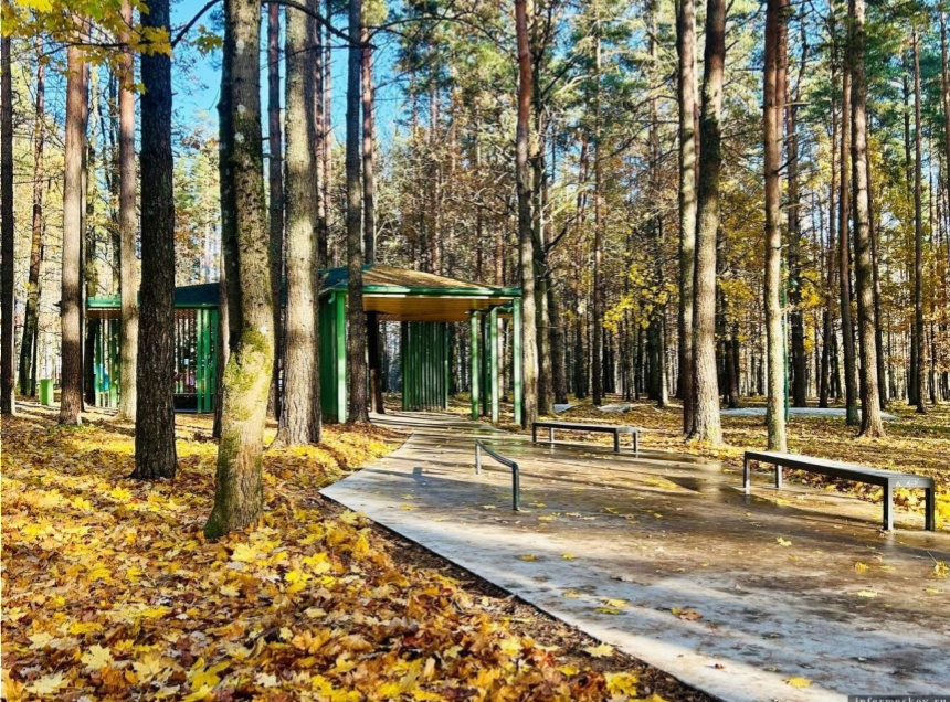 В парке организовали новую дорожно-тропиночную сеть, установили систему освещения, главный павильон, скейт-парк с павильоном, детскую игровую площадку, сцену с габионами.