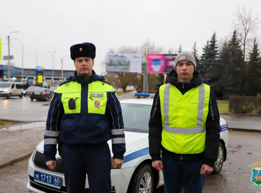 Экипаж ОСР ДПС УМВД России по Псковской области в составе инспектора лейтенанта полиции Аркадия Федорова и стажера по должности инспектора Даниила Кротова возвращался вечером по улице Труда в региональное Управление Госавтоинспекции после несения службы.