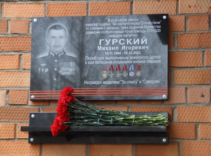 В Пскове открыли мемориальную доску кавалеру трех орденов Мужества, кавалеру ордена «За заслуги перед Отечеством» IV степени с мечами (посмертно) гвардии капитану Михаилу Гурскому. Об этом «Псковской правде» сообщили в пресс-службе Псковской городской Думы.