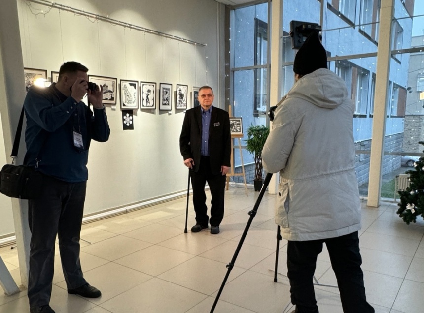 Для программы «Пряничный домик» оператор Сергей Полищук и продюсер Михаил Алферов снимали псковского мастера Виктора Кушнаренко, чья выставка открылась в арт-пространстве «Аквариум» Псковской областной библиотеки 23 декабря.