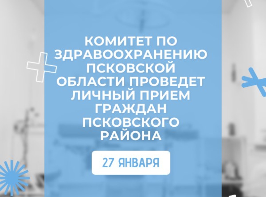 27 января представители комитета по здравоохранению Псковской области проведут личный прием граждан в Псковском районе, сообщили «Псковской правде» в облздраве.