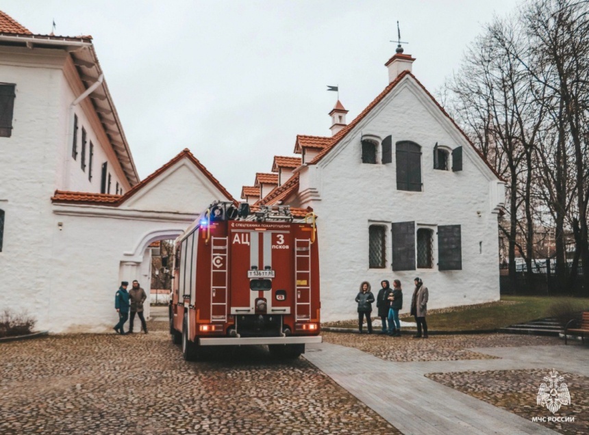 Пожарно-тактическое занятие прошло в музейном комплексе «Двор Постникова» в Пскове. Об этом «Псковской правде» сообщили в ГУ МЧС России по Псковской области.