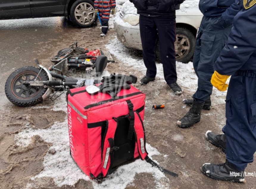 Авария произошла на улице Кузбасской Дивизии у дома №4 в Пскове. Доставщик на электросамокате столкнулся с автомобилем. Об этом сообщает Телеграм-канал «Псковская сводка ПАИ».