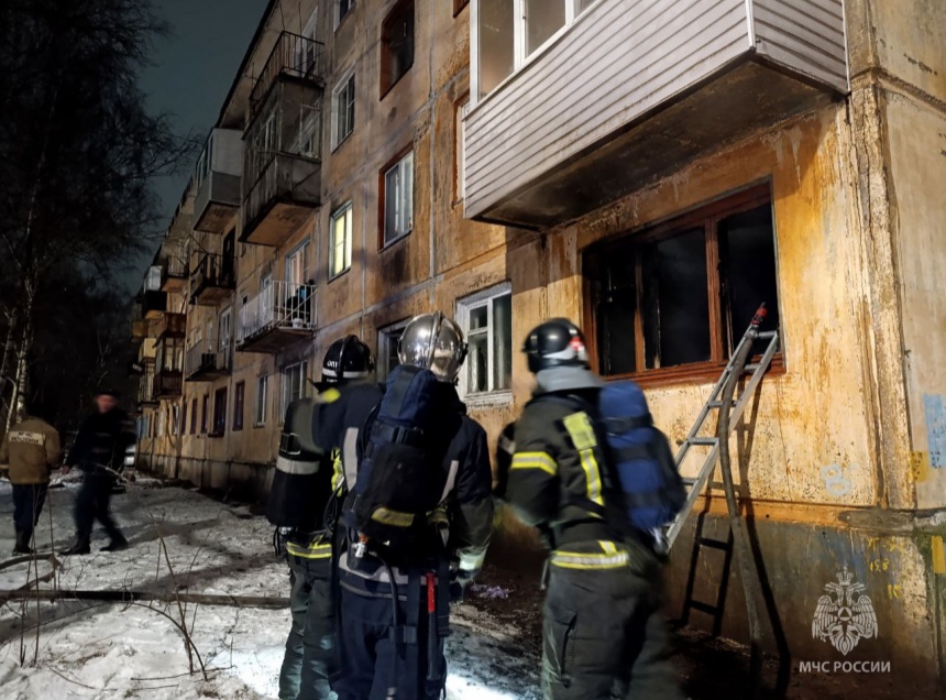 Пожар разгорелся в квартире на первом этаже четырехэтажного дома в Родине Псковского района. До приезда огнеборцев местные вывели на улицу двоих детей.