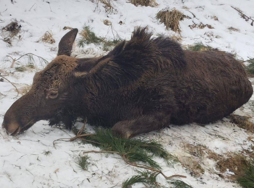 В местное лесничество позвонил охотник и рассказал, что в полынье в устье Большого Ивана замерзает молодая лосиха. Сотрудники лесничества незамедлительно выехали на место. К тому времени неравнодушные местные жители уже подрубили полынью и вытянули веревками замерзающее и уже переставшее реагировать животное.