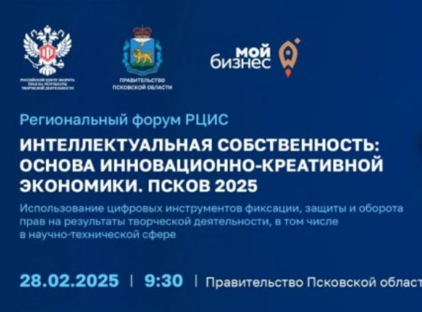 28 февраля в Пскове пройдет форум «Интеллектуальная собственность: основа инновационно-креативной экономики». Об этом «Псковской правде» сообщили в пресс-службе правительства Псковской области. Участники мероприятия обсудят вопросы защиты, оборота и фиксации интеллектуальных прав на территории региона.
