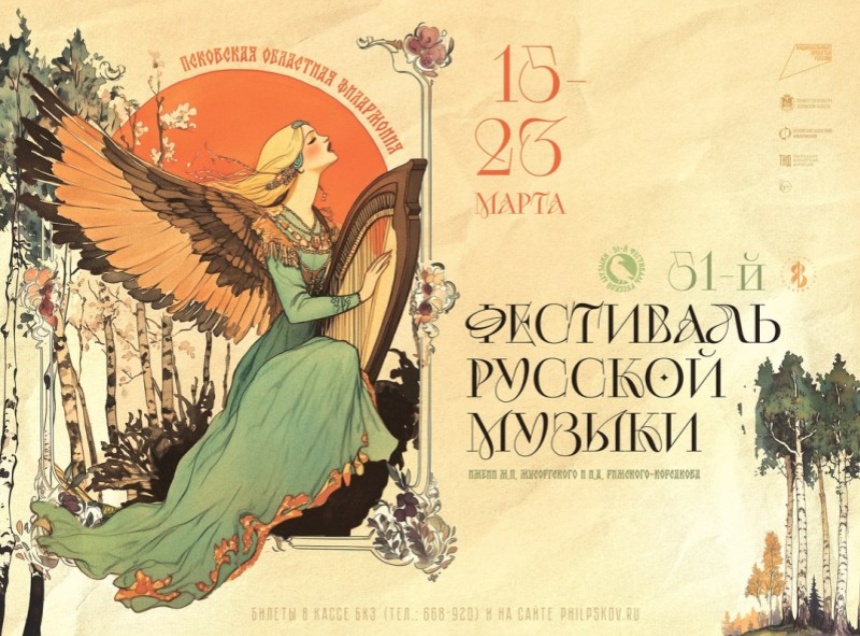 51-й Фестиваль русской музыки имени М. П. Мусоргского и Н. А. Римского-Корсакова пройдет в Пскове с 15 по 23 марта в рамках реализации нацпроекта «Семья».