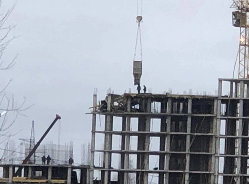 Опалубка обрушилась при строительстве дома на улице Никольской, 7 в микрорайоне Родина. Очевидцы публикуют фотографии в соцсетях.
