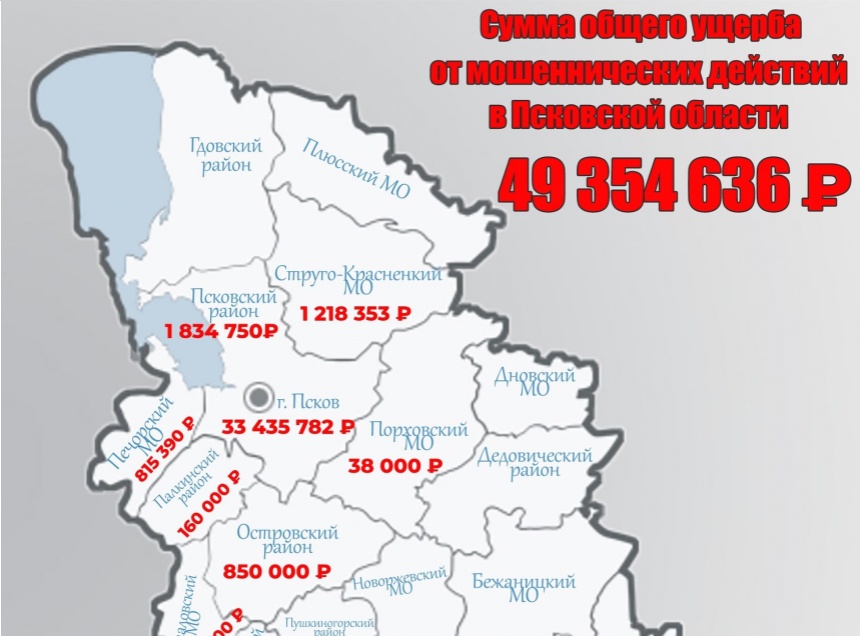 С января по март 2025 года в Псковской области от действий мошенников пострадали 124 человека. Суммарный ущерб составил 49 354 636 рублей. Об этом «Псковской правде» сообщили в пресс-службе УМВД России по Псковской области.