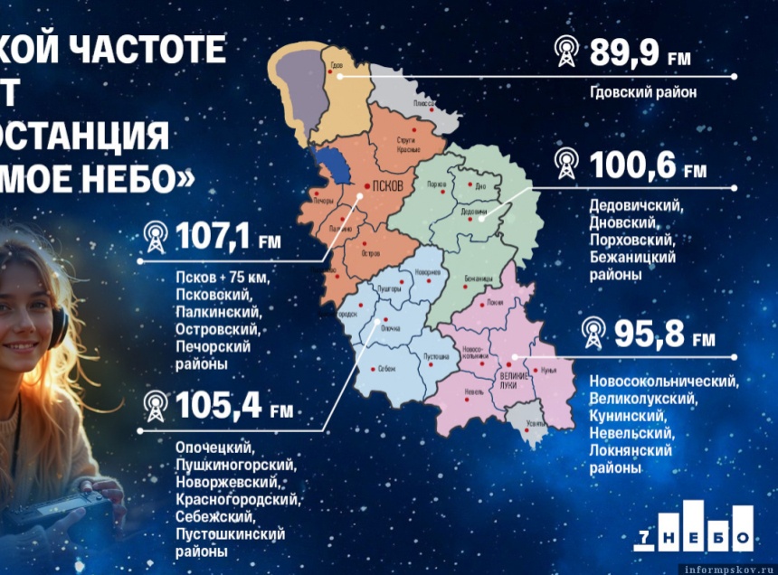 Радиовещание «7 НЕБА» началось в муниципалитетах Псковской области, включая приграничные. Участником двухчасового радиомарафона станет губернатор Псковской области Михаил Ведерников. На прямую связь со студией выйдут главы муниципалитетов, где запускается радиовещание.