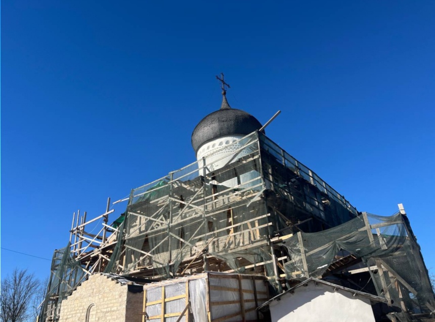 Реставраторы также восполняют дефекты для профилактики и дальнейшей эксплуатации церкви Николы со Усохи. Будет заменен камень.