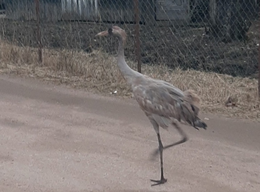 Птицу осенью приютила местная жительница Вероника Шадова. Журавль уже привык к людям, поэтому спокойно ходит по улице и бегает за детьми.