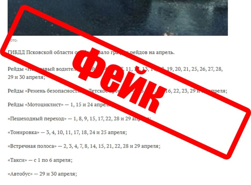 Псковские полицейские опровергли распространяемый в Сети перечень рейдовых мероприятий Госавтоинспекции на апрель. Об этом «Псковской правде» сообщили в пресс-службе Управления МВД России по Псковской области.