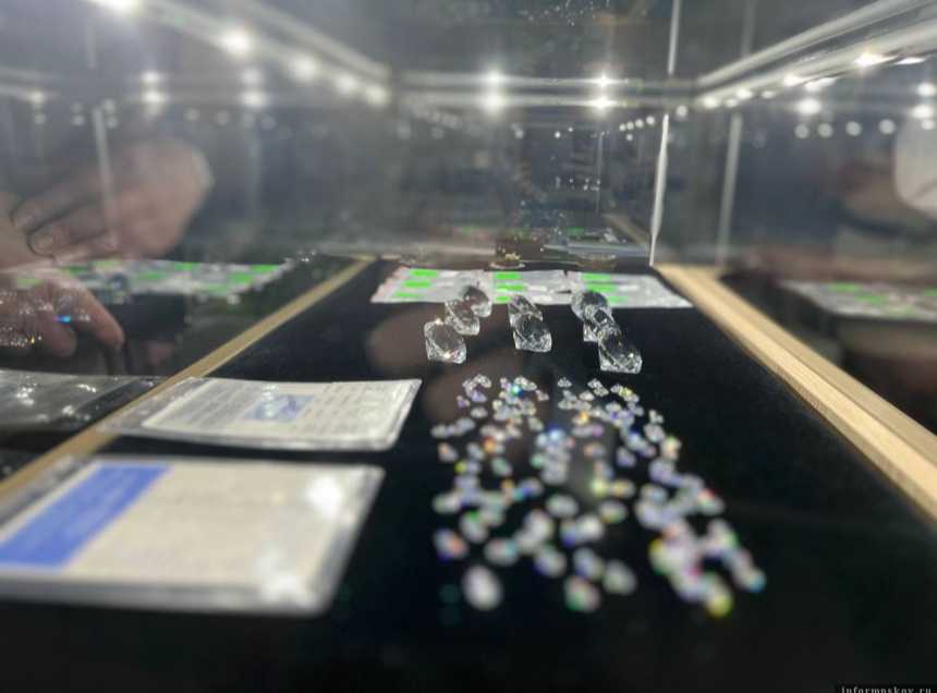 На выставке промышленности в Пскове, открывшейся в рамках выездной стажировки Министерства промышленности и торговли России «Федеральная практика», представили алмазы. Об этом сообщает Псковское агентство информации со ссылкой на исполняющего обязанности директора по развитию ОЭЗ «Моглино» Сергея Дутова.