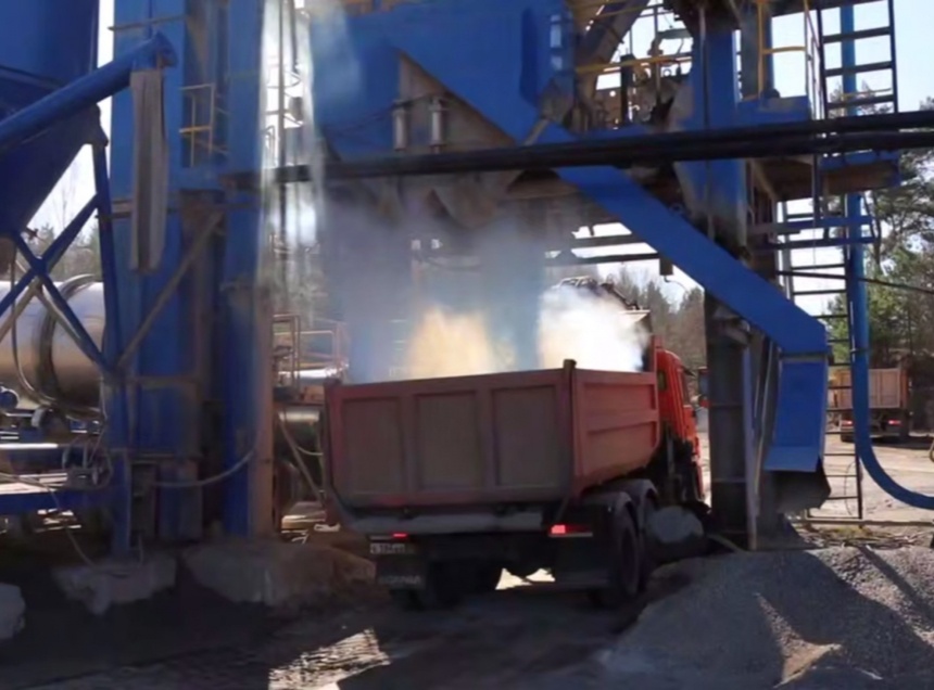 Специалисты уже изготовили на заводе партию асфальтобетонной смеси.