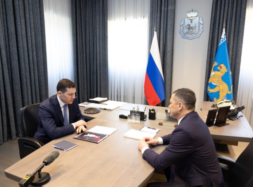 В ходе рабочей встречи с Антоном Алихановым Михаил Ведерников обсудил развитие промышленности Псковской области и поддержку региональных предприятий.