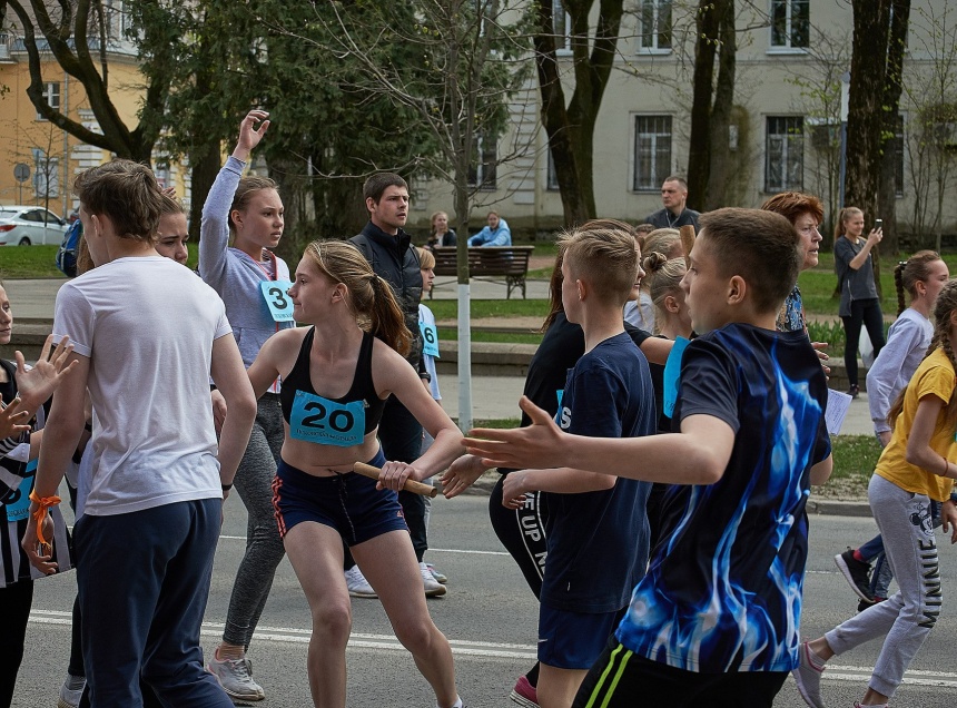 От школ и лицеев Пскова и муниципальных образований в эстафете участвуют смешанные команды: пять девушек и пять парней.