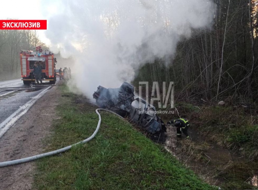 Автомобиль пьяного водителя вылетел в кювет, перевернулся и загорелся. Об этом сообщает Телеграм-канал «Псковская сводка ПАИ».
