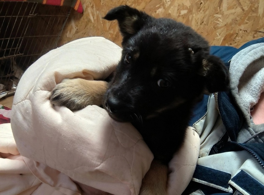 Животное обнаружили случайно. Проходящий мимо мужчина увидел щенка, который находился в канаве среди мешков мусора, забрал его и передал в приют для собак.