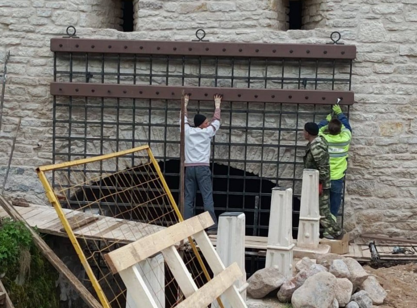 На башне Нижних решеток в Псково-Печерском монастыре установили опускную решетку крепостных ворот (герсу). Об этом сообщается в Телеграм-канале АНО «Возрождение объектов культурного наследия в Пскове и Псковской области».
