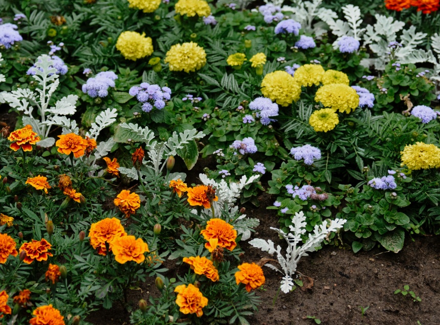 Для высадки специалисты выбрали устойчивые к условиям городской среды цветы. В клумбах Великих Лук высадят целозию, цинерарию, сальвию, агератум, бархатцы.